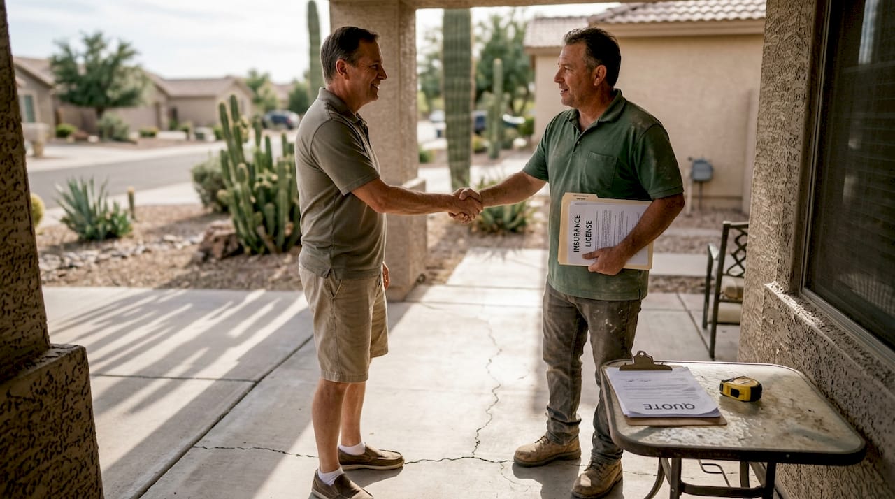Watch for red flags: a contractor who won't provide documentation, bids dramatically below everyone else, or asks for full payment upfront. Review Arizona handyman laws if your project is smaller in scope, since the rules shift significantly below the $1,000 threshold. Following AZ contractor best practices from the shortlisting stage protects you before the contract is even written.